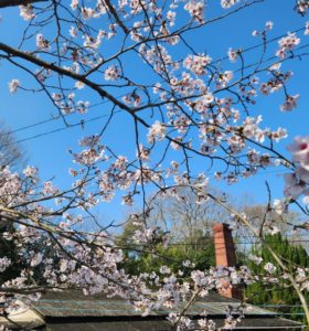 今朝の桜。 庭の桜が満開です。