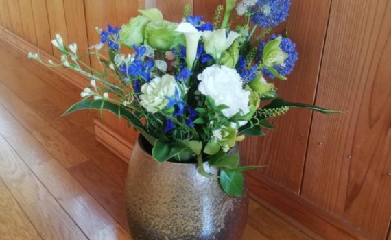 お誕生日に素敵な花束をいただきました。大きめの花入れに飾りました。